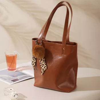 Large Cow Leather Tote Bag for Women – Stylish Commuter Shoulder Bag with Spacious Interior