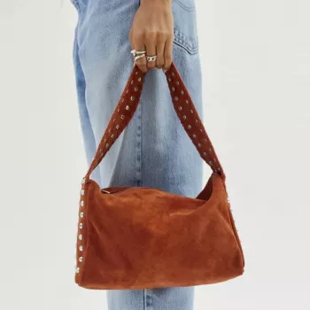 Soft Faux Suede Satchel Handbag with Rivets