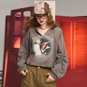 Retro Fox Print Hooded Sweatshirt for Women
